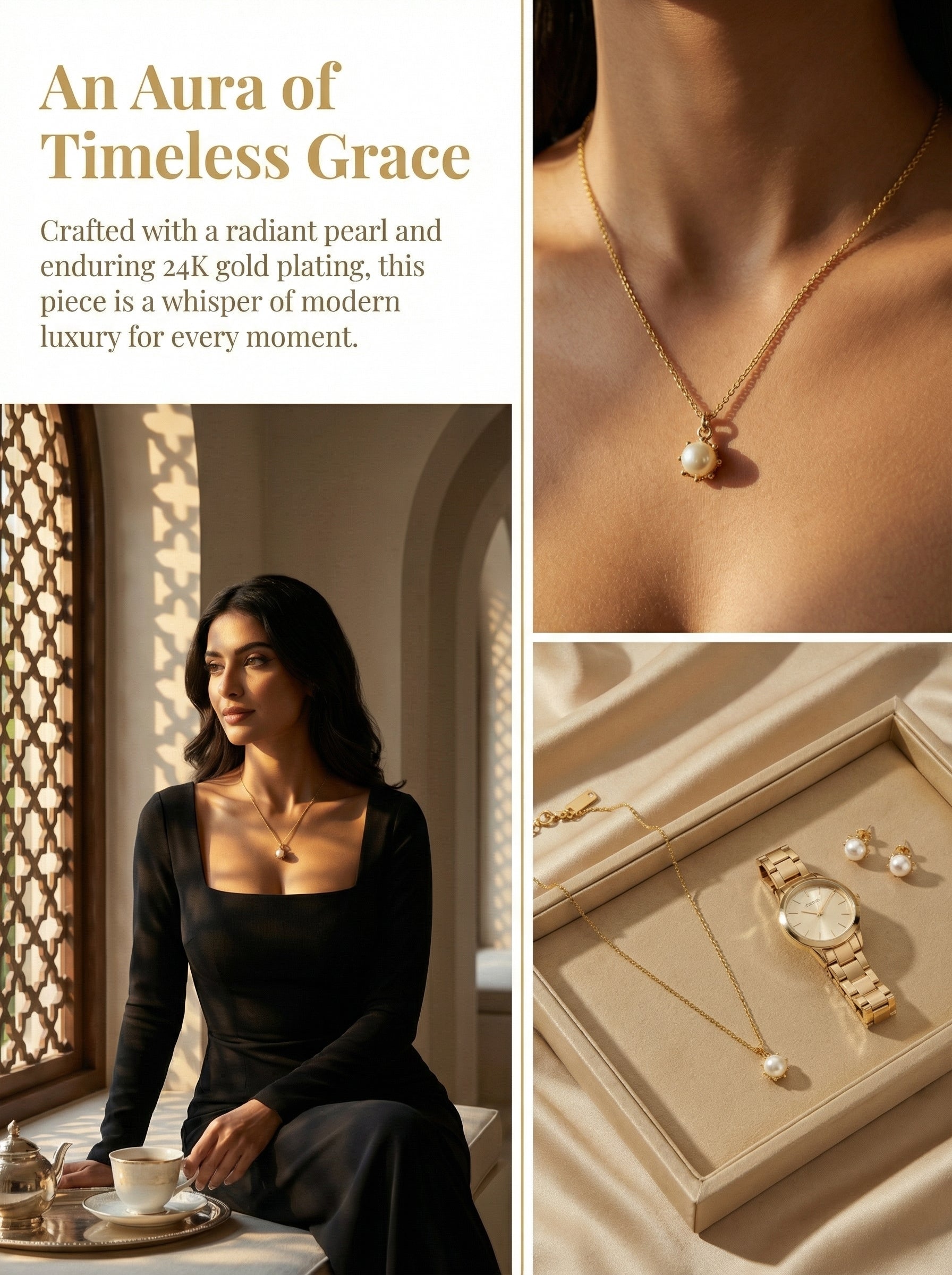 - Deep Sea Lustrous Pearls, Condensing Elegant Aura: Selected high-gloss imitation pearls serve as the visual core, combined with a unique radial metal inlay process that locks the radiance around the neck like stars surrounding the moon, fully exuding noble temperament.