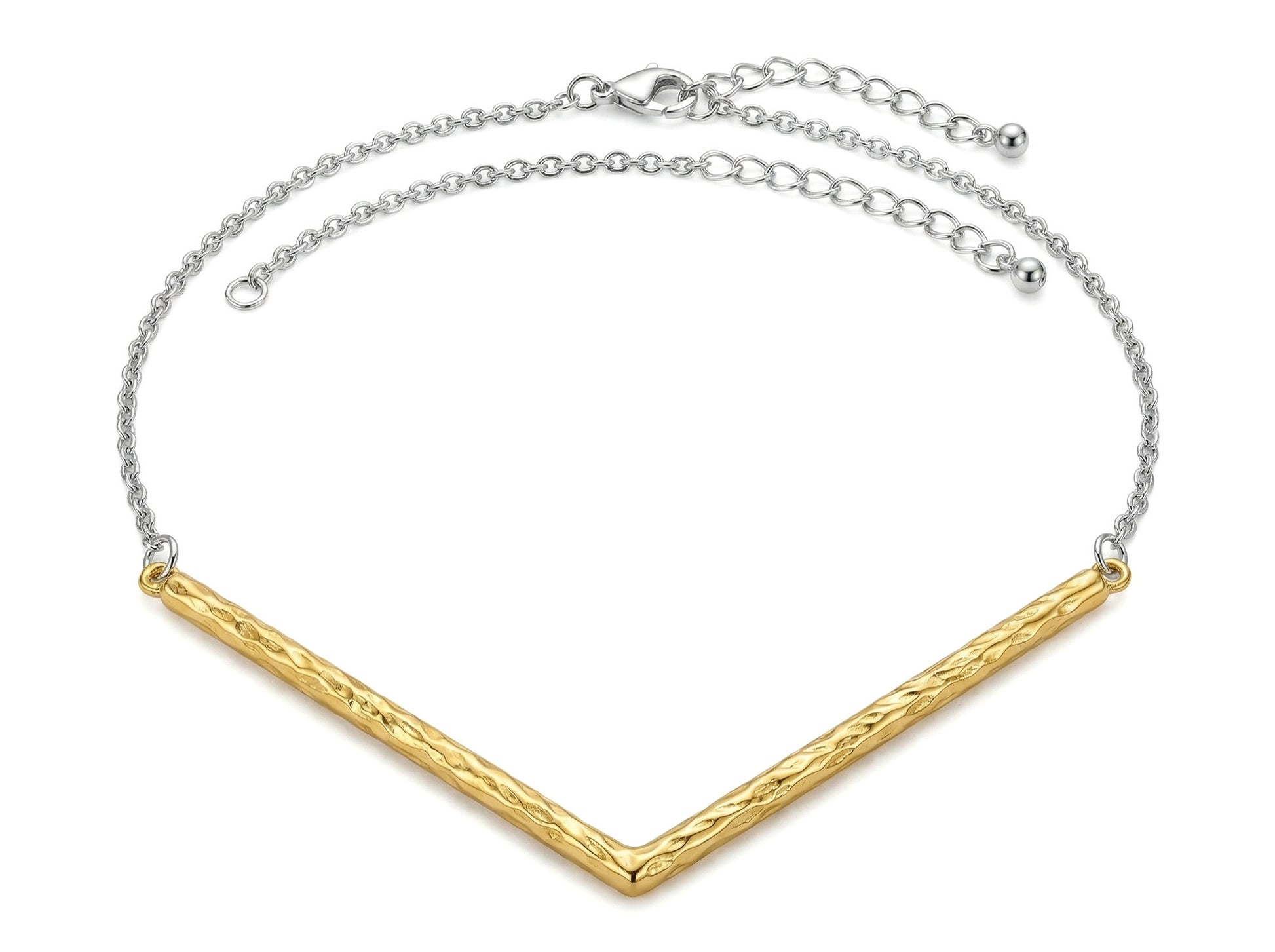 V-shaped hammered two-tone spliced clavicle chain
